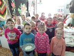 Наступною станцією була сама маленька кімната у нашім закладі – сольова кімната, загартувавшись в якій, діти побігли до музичної зали, до 4 станції. Тут вихованці мали змогу зіграти в оркестрі на підручних та саморобних музичних інструментах і відчути себе артистами. Потім усі разом завітали до спортивної зали і під керівництвом інструктора з фізкультури виконали декілька спортивних завдань, отримали підказку до останньої зупинки подорожі, харчового блоку. Діставшись до кухні, дітей чекала смачна, солодка та свіжоспечена Калита.